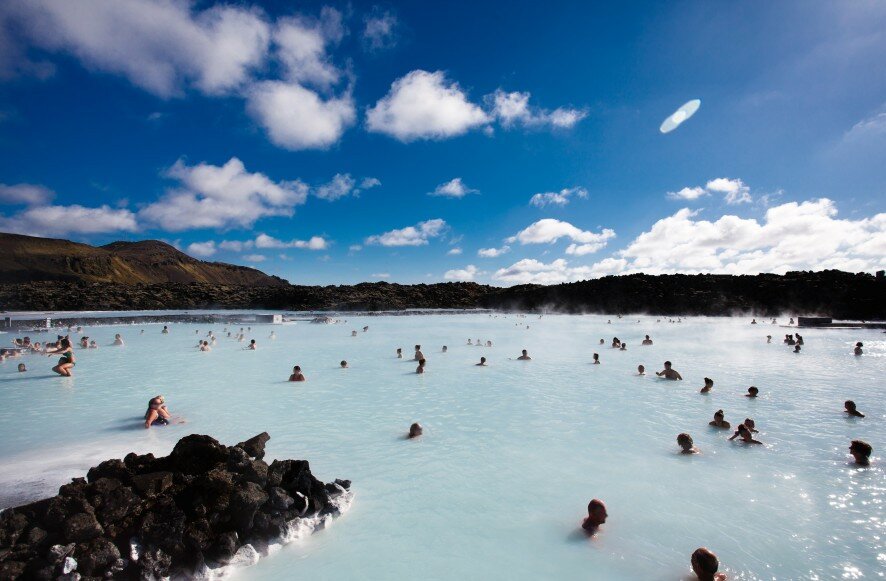Этот геотермальной спа является одной из самых посещаемых туристами достопримечательностей в Исландии. При колебании температуры в районе 37-38оС, эти курорты как бы созданы для идеального зимнего бегства от мороза, снега и льда.