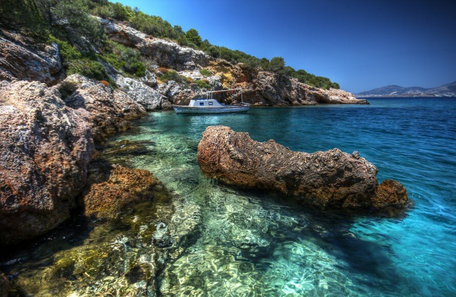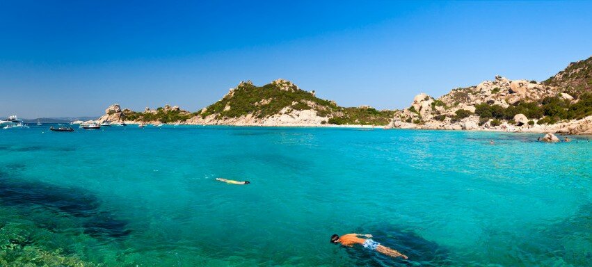 Эти места не для того, чтобы бездельничать на пляже, так как берег представляет собой смесь песка, гравия и камней, но скалы и чистая вода отлично распологают вас к подводному плаванию.