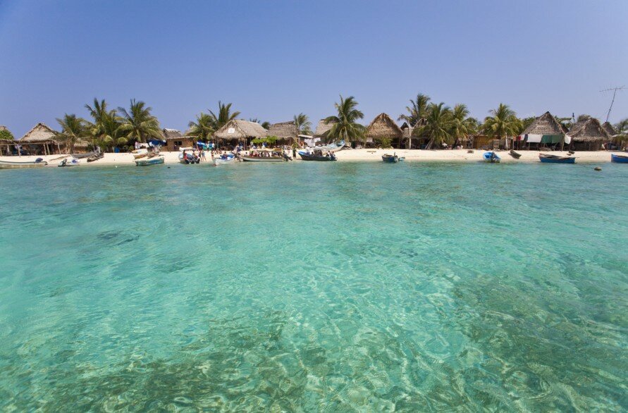 вытянутыми белыми пляжами и водой, наполненной красивыми рыбами.