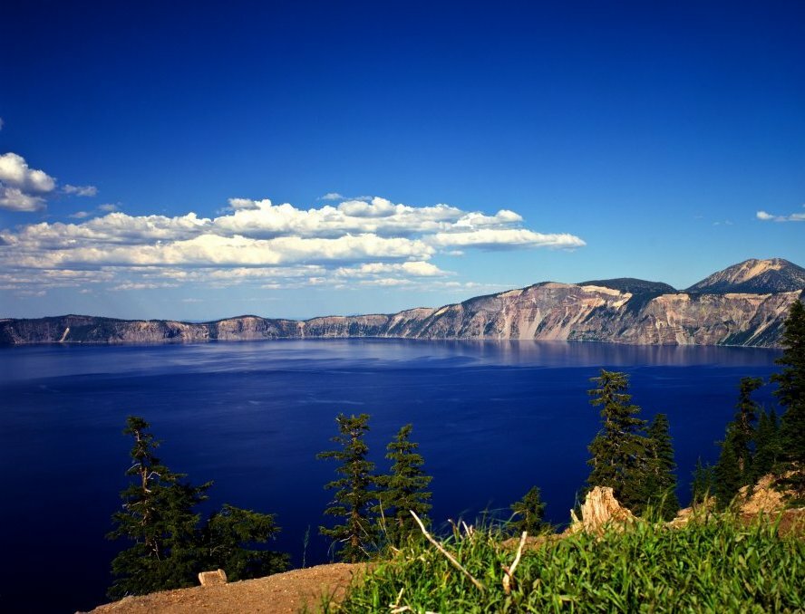 Это озеро идеального ярко-синего цвета, в окружении отвесных скал, образовалось из древнего вулкана. Озеро «Крейтер» восьмое по глубине во всём мире.